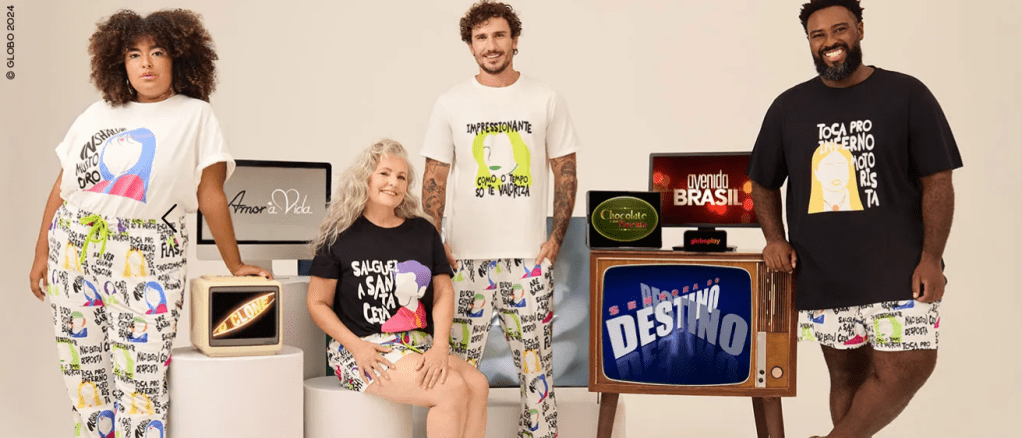 A Globoplay junto com a Marca de roupas Tjama, do Ex-BBB Thiago Abravanel, lançaram uma linha de roupas com produtos licenciados que se inspiram em memes de novelas da Globo.